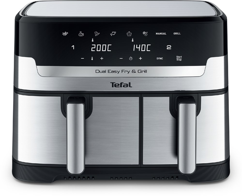 Длина шнура питания 0.9 м Можно мыть в посудомоечной машине Да, только съемные элементы Тип товара Аэрогриль Бренд Tefal Производитель Tefal Серия Dual Easy Fry & Grill Количество программ 8 Емкость чаши 8.3 л Мощность 2700 Вт Антипригарное покрытие поддона и корзины Есть Управление Сенсорное Таймер Да Цвет Нержавеющая сталь Страна производства Китай Гарантия 2 года Размер (ДxШxВ), см, без упаковки 41.80 x 40.20 x 30.50 Вес, кг, без упаковки 7.80 Вес, кг, с упаковкой 11.00Размеры (ДxШxВ), см, с упаковкой 47.50 x 43.50 x 34.00