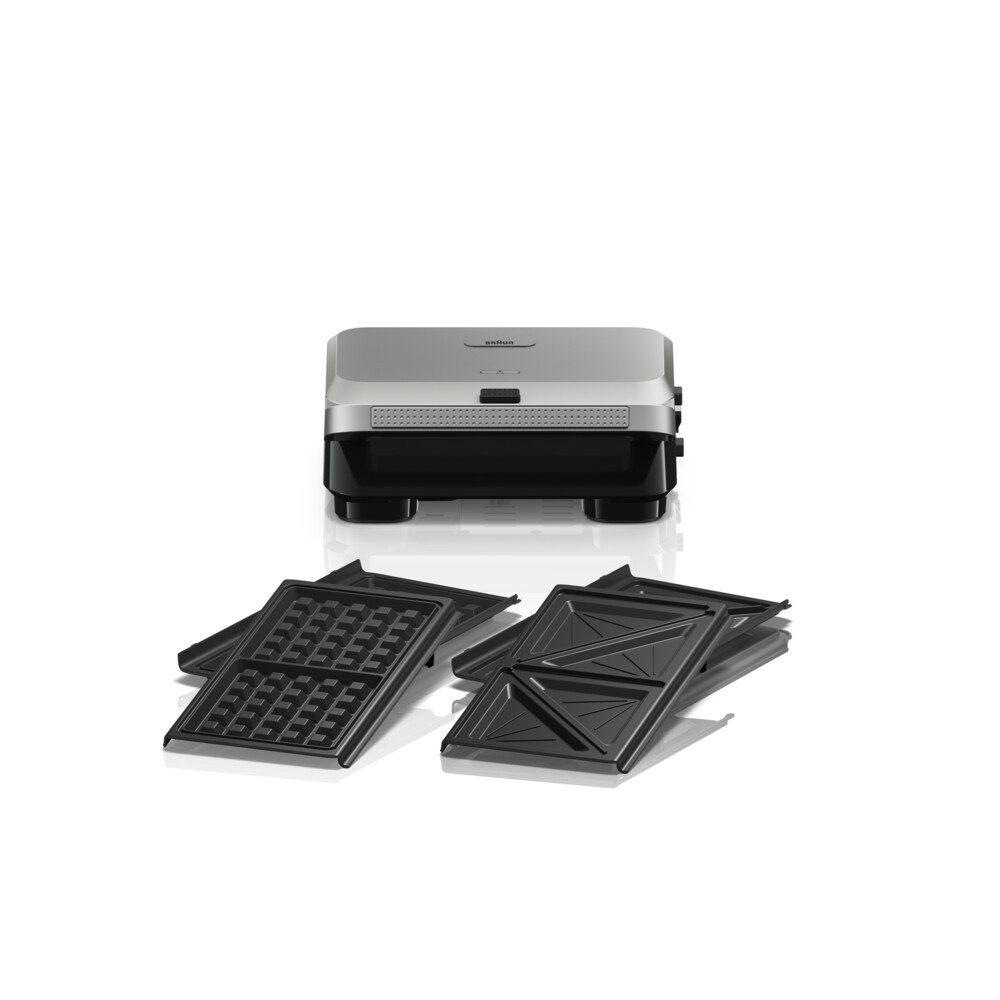 Мощность, Вт800Габариты (ВхШхГ)31.5x19x30 cmВес нетто, кг3.210МодельSM5005Материал корпусапластикСтрана производстваКитайЦветчерный/серебристыйГарантия, лет1Технические характеристикиИндикатор включенияДаСъемные пластиныДаАнтипригарное покрытиеДаСъемные пластины можно мыть в посудомойкеДаВстроенный жироуловительНетОчень глубокие пластины для вафельДаКомплектацияКомплект пластин для сендвичей; Комплект пластин для вафлейРазмер пластин27x13 см