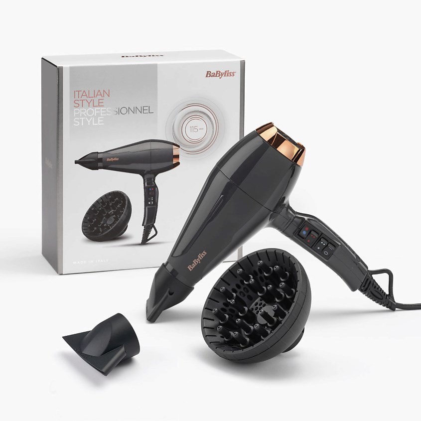 Тип фен Мощность 2200 Вт Тип мотора мотор переменного тока (AC) Скорость воздушного потока 115 км/ч Управление Управление кнопочное Количество скоростей 2 Количество режимов нагрева 2 Независимая регулировка нагрева и воздушного потока да Расположение кнопок управления сбоку Насадки Количество насадок 2 Насадка-концентратор да Размер насадки-концентратора 6 мм Насадка-диффузор да Дополнительные характеристики Обдув холодным воздухом да Ионизация да Петля для подвешивания да Цвет и материал Цвет чёрный Материал корпуса пластик Питание Длина сетевого шнура 2.8 м Комплектация Инструкция да Гарантия 60 месяцев Страна производитель Италия Штрих-код 3030050175691 Вес и габариты в упаковке1.1 кг; 0.1x0.25x0.27 м