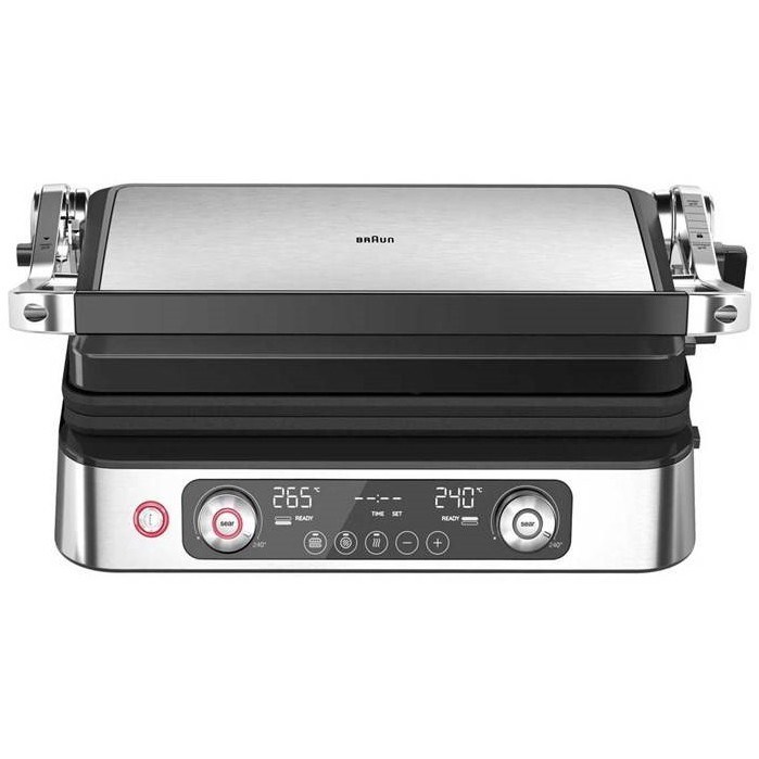 Тип контактный гриль Потребляемая мощность 2200 Вт Макс. температура нагрева 265 °C Управление электронное Материал поверхности металл Размер рабочей поверхности 37x23 см Поверхность пластин гладкая и рифленая Пластин в комплекте 2 шт Функции термостат / таймер выключения / раздельная регулировка температуры / съемные пластины / ручная подстройка высоты пластин / открытие на 180° Дисплей есть Поддон для жира есть Материал корпуса металл Габариты44.5x35.5x18 см