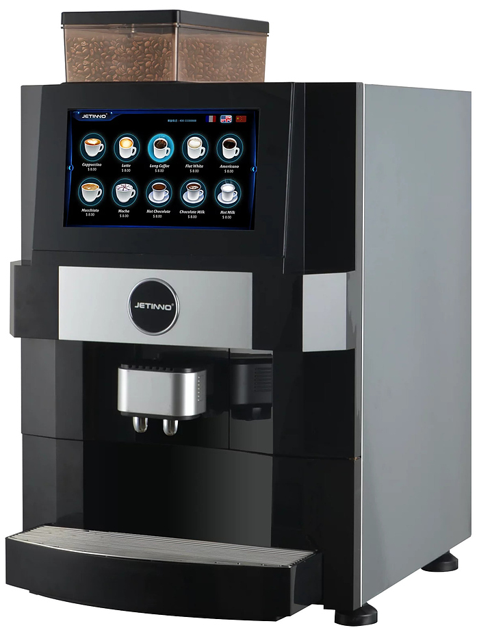 Съемный каплесборник Тип кофе: зерновой Наличие помпы Счетчик порций Настройка степени помола Подсветка Предварительное смачивание Используемое молоко: сухие сливки Возможность подключения платежных систем Возможность подключения телеметрии Регулятор крепости Режим автоматической промывки Цвет: серебристо-черный Количество контейнеров для растворимых напитков, шт: 3 Количество миксеров, шт: 2 Количество бойлеров: 1 Количество кофемолок: 1 Дозировка кофе: 8-20 г Максимальная загрузка кофе, кг: 1,5 Количество групп: 1 Давление помпы, бар: 15 Емкость бойлера: 700 мл Ёмкость контейнера для использованного кофе (порций): 3 литра (130 порций) Регулировка диспенсера по высоте, мм: до 14 см Кофемашина суперавтоматическая JETINNO JL22-ES4C Характеристики: Страна Китай Страна Гарантия 12 месяцев Статус В наличии Длина, мм 400 Ширина, мм 549 Высота, мм 635 Габаритные размеры ДхШхВ, мм 400х549х635 Производитель JETINNO | Кофемашины суперавтоматические Jetinno Цвет Черный Установка Настольная Тип кофе зерновой Разновидность кофемашины автоматическая Производительность, max 200 чашек/сутки Подогрев чашек Нет Паровой кран Нет Назначение/тип для дома Объём бойлера, л 0.7 Материал корпуса Крашенная сталь Контейнер для шоколада Есть Количество кофемолок 1 Капучинатор Есть Емкость контейнера для отработанного кофе, порц. 130 Емкость контейнера для кофе, гр 1500 Встроенная кофемолка Есть Вес, кг 50 Напряжение питания, В 220 Подключение Электрическое Мощность, кВт 2.7Тип подключения к воде Встроенная помпа