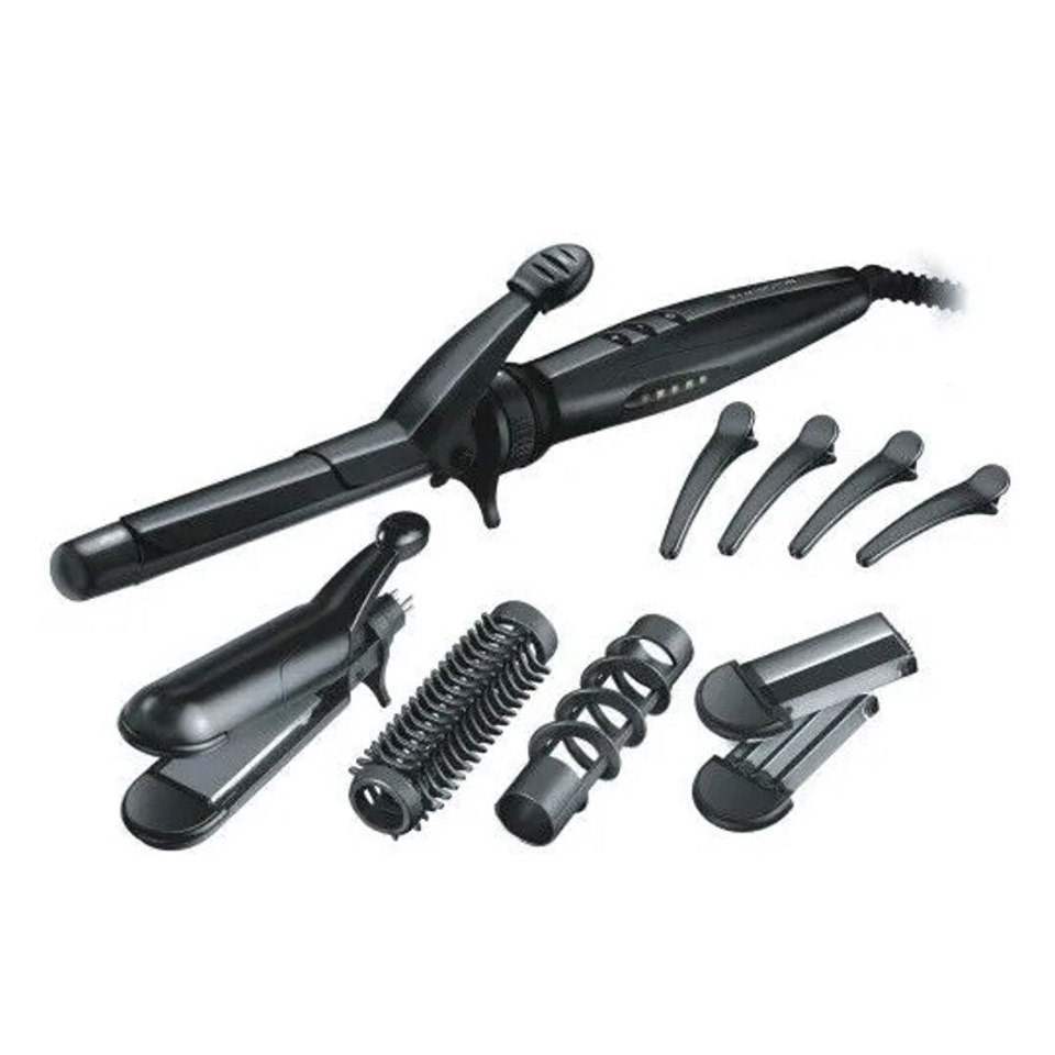 В комплект входят насадки: щетка-насадка, пластины для выпрямления и гофре, спиральная насадка, щипцы диаметром 19 мм и 4 зажима для фиксации волос. Такой набор аксессуаров позволяет делать завивку локонов, накрутку прядей или аккуратное выравнивание волос. Удобный кейс обеспечивает комфортное хранение техники.