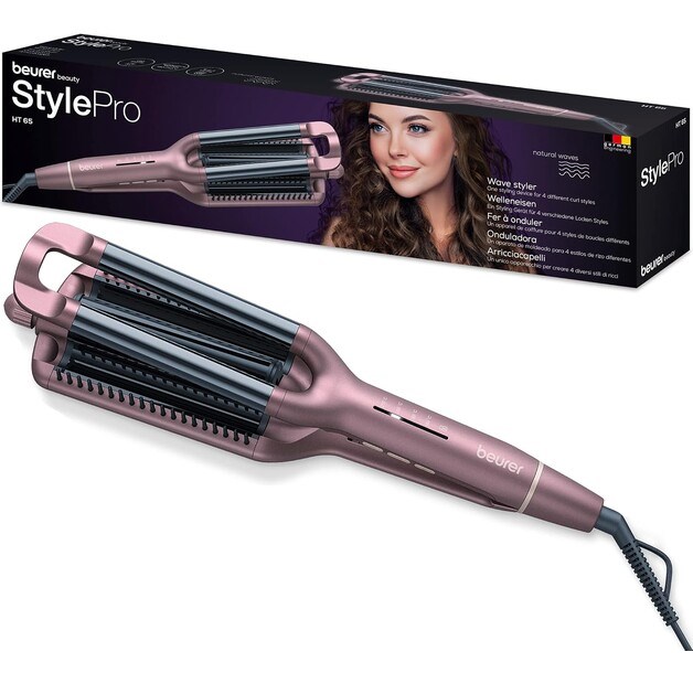 Для стильных локонов: с помощью щипцов для завивки волос 4 в 1 Вы сможете за пару минут создать пляжные локоны, естественные волны, волны русалки или голливудские локоны. Щипцы для завивки имеют керамическое покрытие с кератином для защиты волос. 4 в 1: пляжные локоны, естественные волны, волны русалки, голливудские локоны Регулируемая температура 160-210 °C Керамическое покрытие с кератином для защиты волос Цифровой дисплей для индикации температуры Безопасная укладка благодаря холодному кончику щипцов, блокировке кнопок и автоматическому отключению через 30 минут Обозначение изделия Плойка Автоматическое выключение да Покрытие Кератиново-керамическое покрытие Провод с шарнирным креплением да Несколько настроек температуры Разные температурные режимы 160-210 °C Масса изделия 630 g Размеры изделия (Д x Ш x В) 34,4 x 7,9 x 3x3 cm CE даГарантия (более подробная информация в инструкции) 3
