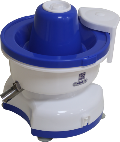 Электросоковыжималка "Нептун" с ёмкостью для отжима Назначение: Предназначена для получения соков из твёрдых свежих овощей и фруктов (морковь, свекла, яблоки и т. д.), а также вишни, помидоров в домашних условиях. Технические характеристики: Скорость переработки (яблоки) 120 - 180 кг/час Производительность (яблоки) не менее 60 л/час Эффективность отжима 30-55% Электропитание 220 В +- 10% , 50 Гц Потребляемая мощность не более 320 Вт Удельный расход электроэнергии не более 1,3 Вт/час на 1 кг Масса нетто 7 кг. Режим работы продолжительный Срок службы до 7 лет Это поможет Вам сделать выбор:Не имеет аналогов по скорости переработки.Не требует предварительной подготовки продукта - измельчения, удаления косточек.Не требуется периодически прерывать работу - очистка корзины производится автоматически в специальный контейнер.Конструкцией предусмотрена возможность отжима из сырья, содержащего малое количество сока, в том числе моркови, свеклы и тыквы.Получаемый сок не загрязнится кислотами, содержащимися в косточках и семечках.Используется надежный, асинхронный двигатель.Продукция сертифицирована.Дипломант программы "100 лучших товаров России"