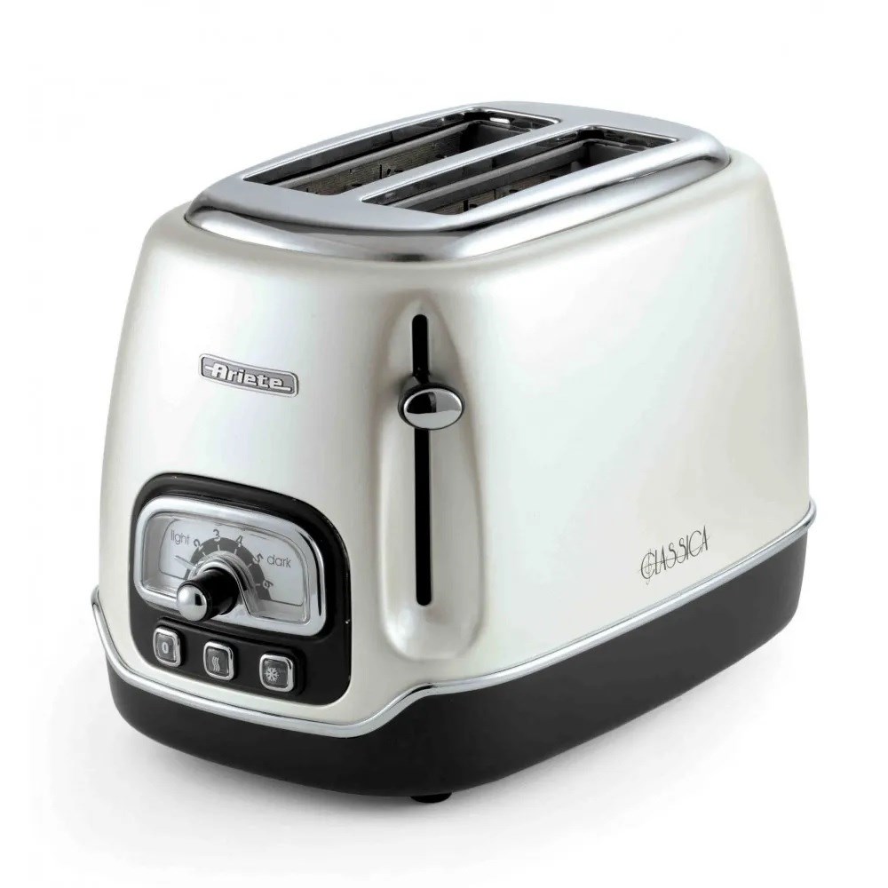 КорпусМатериал корпусаМеталл, ПластикВес товара, г1400ФункцииРежимы тостераПодогрев, РазмораживаниеКонструктивные особенностиПоддон для крошек, Термоизолированный корпусФункциональные особенностиКнопка отмены, Регулировка степени обжариванияОсновныеМощность, Вт815Количество тостов2Число степеней обжаривания6Тип управленияМеханическоеКоличество отделений2ОбщиеГарантия2 годаДополнительныеЦветБелыйБрендAriete