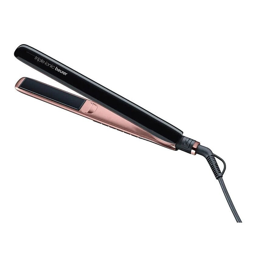 Щипцы BEURER HS80 помогут оперативно выпрямить локоны, сделать эффектную укладку. Есть три уровня функционирования устройства, в зависимости от типа волос. Благодаря титановому покрытию волосы будут надежно защищены от повреждений. Ионовая технология придаст волосам мягкости. Модель обладает компактными параметрами. Это позволит удобно брать щипцы с собой на работу, в поездку. Особенности прибора: компактный и легкий; стильный и современный дизайн; нагревается за несколько секунд; не повреждает волосы; функция Triple Ionic позволяет включать режим ионизации; пластины с титановым покрытием защищают волосы; легкое скольжение пластин по волосам; 3 уровня индивидуальной настройки; возможность индивидуальной настройки режима температуры в зависимости от типа волос; диапазон температуры нагрева от 100 до 220 градусов; пластины на пружинящей основе; во время работы на верхней части прибора появляется ЖК дисплей Magic; закругленная форма пластин позволяет делать укладку; автоматическое отключение; защита от перегрева; функция памяти сохраняет настройки температуры; провод вращается на 360 градусов благодаря шарнирному соединению; фиксатор и сумка из термостойкой ткани для транспортировки и хранения прибора; проушина для подвешивания. ХарактеристикиТип:выпрямитель Покрытие рабочей поверхности:титановое Температура нагрева (до):220 °C Ионизация:да Регулировка, индикация температуры:да Мощность:45 Вт